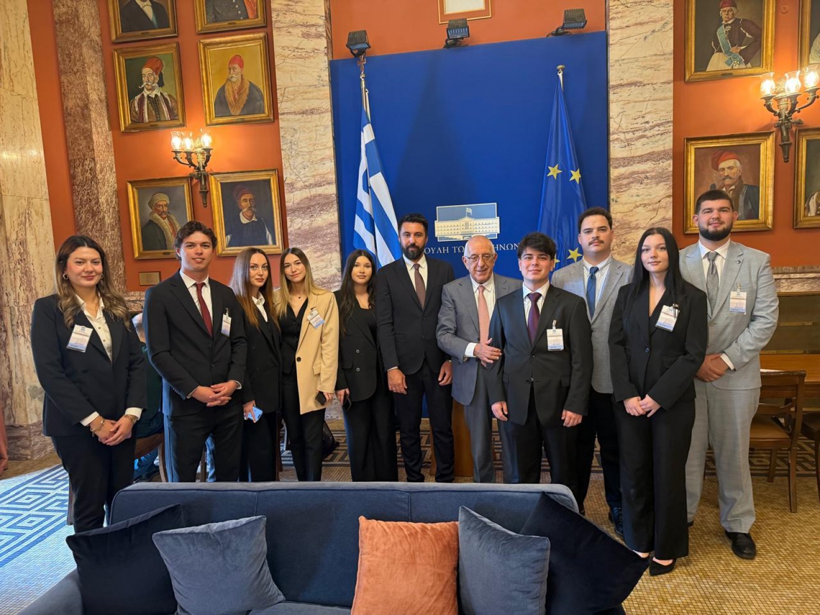 Öğrenciler daha sonra Yunan Parlamentosunu ziyaret etti. Ziyaret sırasında Rodop Milletvekili Özgür Ferhat ile bir araya gelen gençler, meclisin bir oturumunu izleme olanağı buldu. Ayrıca Meclis Başkanı Nikitas Kaklamanis ile tanışarak kendisine hediyelerini takdim ettiler. Rehber eşliğinde meclis binasını gezen öğrenciler, yapının tarihi ve işleyişi hakkında bilgi aldılar.