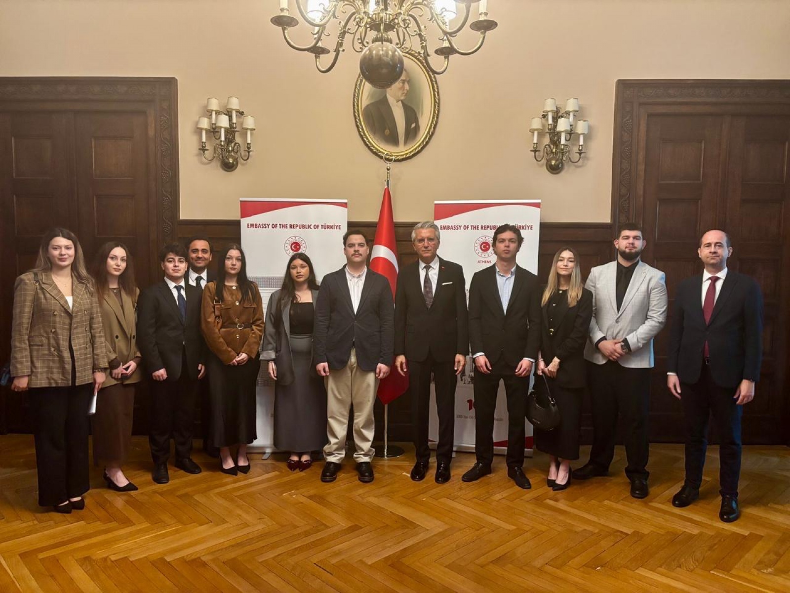 Eğitim gezisi kapsamında Batı Trakyalı öğrenciler, Türkiye’nin Atina Büyükelçiliğine de nezaket ziyaretinde bulundular. Büyükelçi Çağatay Erciyes ve Müsteşar Sadık Tabar ile yapılan görüşmede, Batı Trakya’nın bölgedeki barış için önemi, Türk Azınlığın hakları ve gençlerin bölge geleceğindeki rolü vurgulandı.