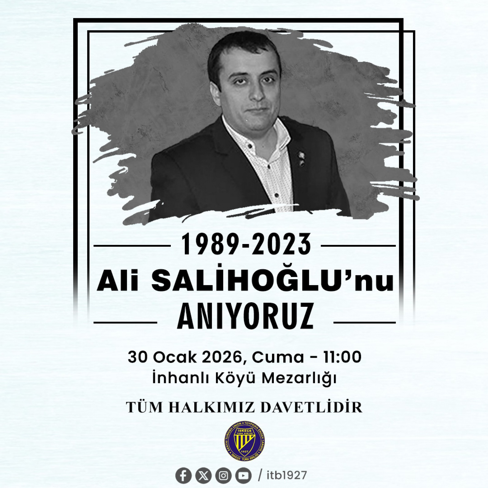 İskeçe Türk Birliğinde (İTB) uzun süre yöneticilik yapan Ali Saşihoğlu, vefatının üçüncü yıl dönümünde İnhanlı köyündeki kabri başında anılacak.