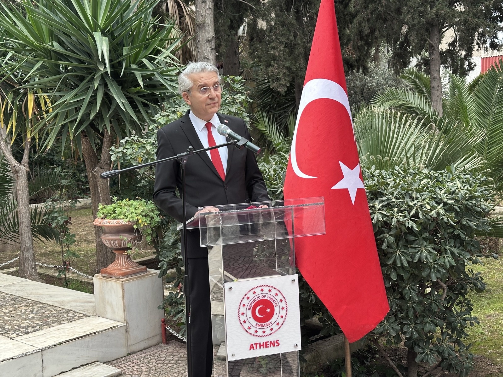 Törene Türkiye’nin Atina Büyükelçisi Çağatay Erciyes, Atina-Pire Başkonsolosu Işıl Işık Civelik, askeri ataşeler ve diplomatik misyon temsilcileri katıldı. Program, şehitlik anıtı önünde gerçekleştirilen saygı duruşu ve İstiklal Marşı’nın okunmasıyla başladı.