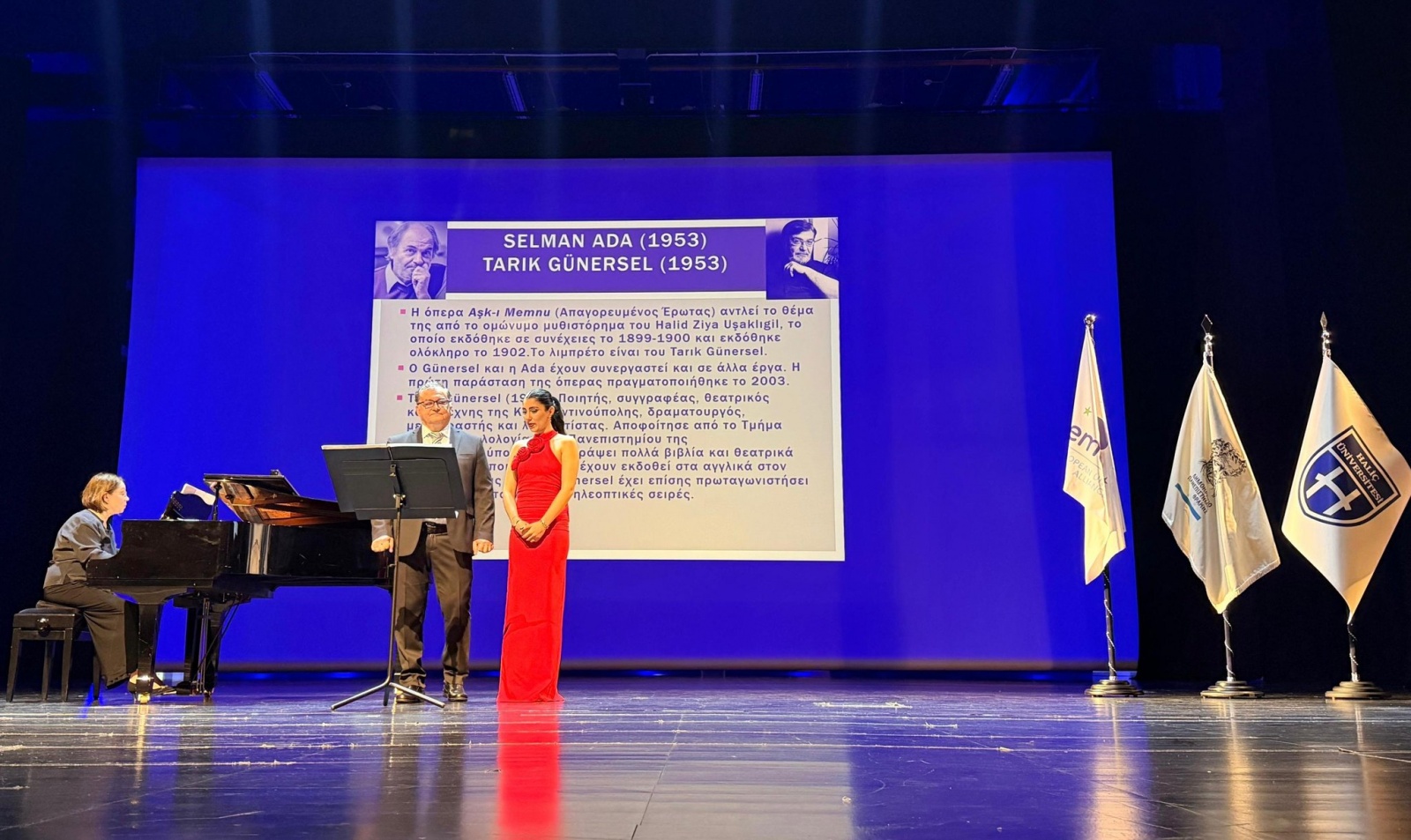 Piyanoda Fatma Zeynep Eğilmez ve Thanasis Trikupis sanatçılara eşlik etti. Piyanist ve akademisyen Trikupis, piyano performansının yanı sıra programın bilimsel ve sanatsal çerçevesine katkı sundu.