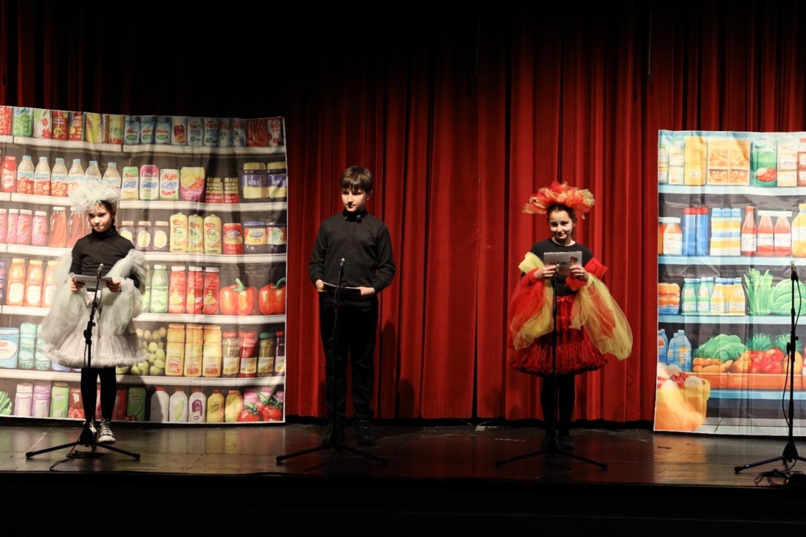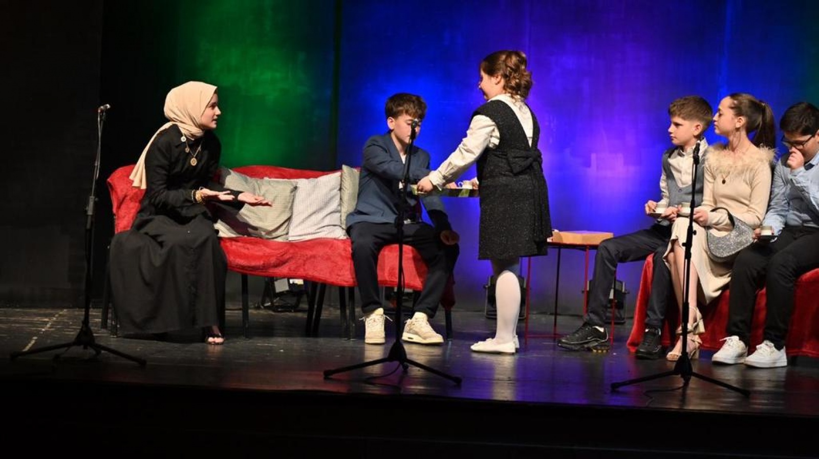 Tiyatro şöleni, 5 Nisan Pazar akşamı sahnelenen “Küçük Kalpler İçin Büyük Hikayeler” adlı oyunla sona erdi. Tamamen ilkokul öğrencilerinden oluşan ekip, farklı skeçlerden oluşan performanslarıyla izleyicilere keyifli anlar yaşattı.