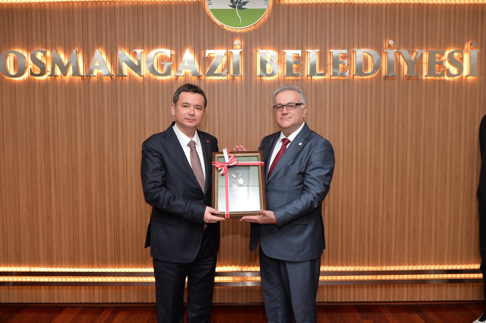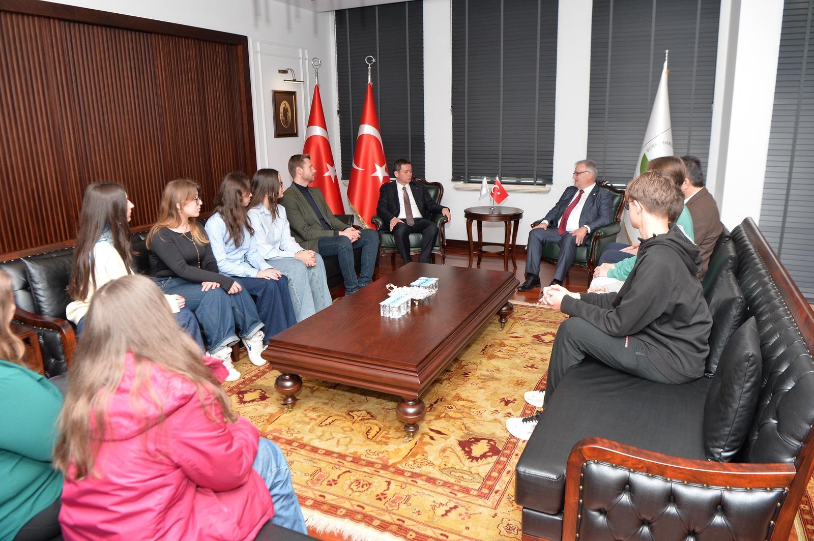 Bursa programı çerçevesinde heyet, Osmangazi Belediye Başkanı Erkan Aydın’ı da makamında ziyaret etti. Ziyarette dernek yöneticilerinin yanı sıra gençler de yer alırken, Osmangazi Belediyesi Meclis Üyesi Batı Trakyalı İsmail Hayat da görüşmeye katıldı. Samimi bir ortamda gerçekleşen buluşmada azınlığın eğitim ve güncel sorunları gündeme geldi. Belediye Başkanı Aydın, Batı Trakya’daki etkinlikte sergilenen performanslardan duyduğu memnuniyeti dile getirerek, gençlerin müzik ve şiir alanındaki başarılarını bir kez daha tebrik etti. Ziyaret sonunda karşılıklı hediye takdimi yapılırken, gençlere de çeşitli hediyeler verildi.
