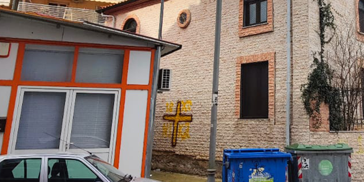 İskeçe Hürriyet Camii’nin duvarına haç işareti çizildi